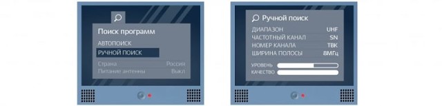 5) Произвести автопоиск каналов. По желанию настроить всё самому (тогда предстоит ввод номера программы и/или частоты).